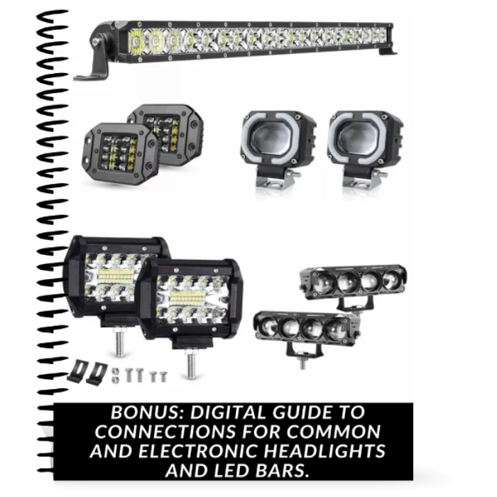 An eBook on headlight and LED bar connections so you can make the right connections without overheating or burning out circuits, valued at: